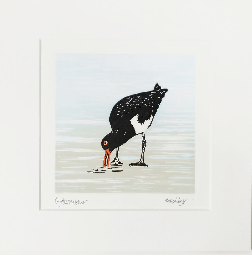 Hand printed with black, blue and sand tones onto 100% acid free block printing paper